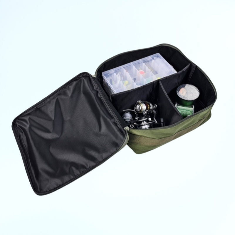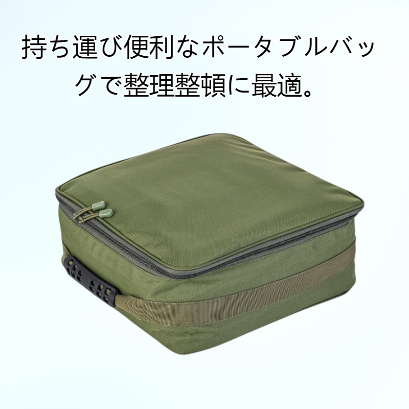 防水設計で大切な釣りリールやアクセサリーをしっかり収納。持ち運び便利なポータブルバッグで整理整頓に最適。